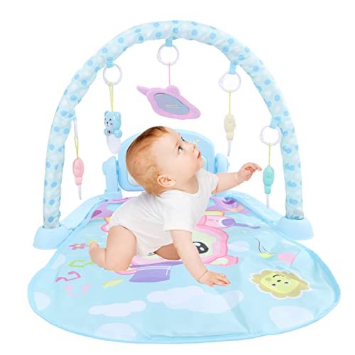 Baby Gym Speelkleed, Baby Activiteit Gym Mat met Muziek Tummy Time Gewatteerd Speelgoed Baby Speelkleed Cadeau (Blauw)