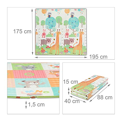 Relaxdays Speelmat dieren, opvouwbaar, vrij van schadelijke stoffen, afwasbaar, 195×175 cm, XPE-schuim, speelkleed kinderen, kleurrijk