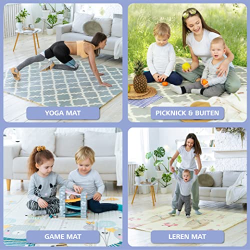 WATERDICHT, VOUWBARE EN DIKKE BABYMAT – Deze opvouwbare kinderspeelmat is gemakkelijk te vervoeren. Hij is geschikt voor gebruik zowel binnen als buiten. Het is ook gemakkelijk schoon te maken.